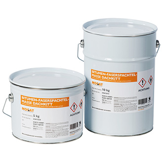 MOGAT Bitumen Fiber Putty is a plastic, solvent- and fiber-containing repair and sealing compound based on bitumen, with a paste-like consistency. The bitumen fiber putty is available in 5 kg and 10 kg containers.